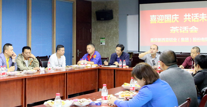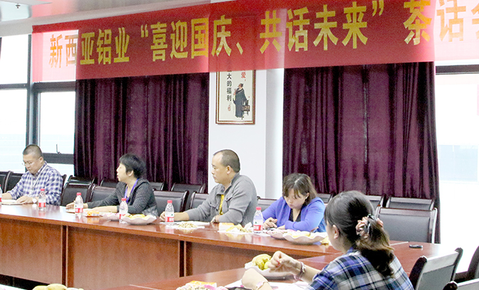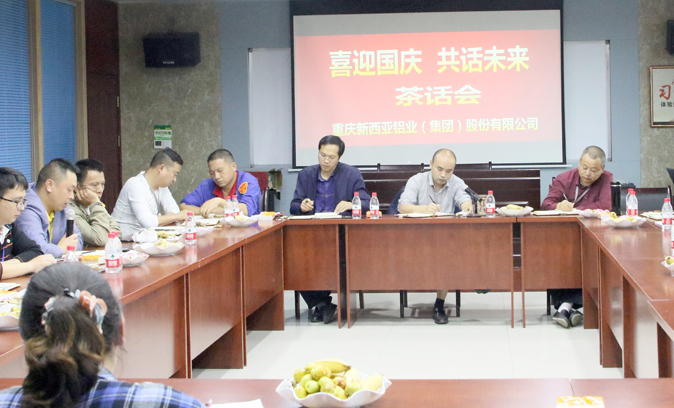 9月30日,重慶西亞鋁業(yè)集團(tuán)公司在三樓會(huì)議室舉行了“喜迎國慶,共話未來”茶話會(huì)。公司董事長兼總經(jīng)理劉斌,副總經(jīng)理傅明華、周雄及各部門負(fù)責(zé)人、部分主管28人,齊聚一堂,共話新西亞美好未來。