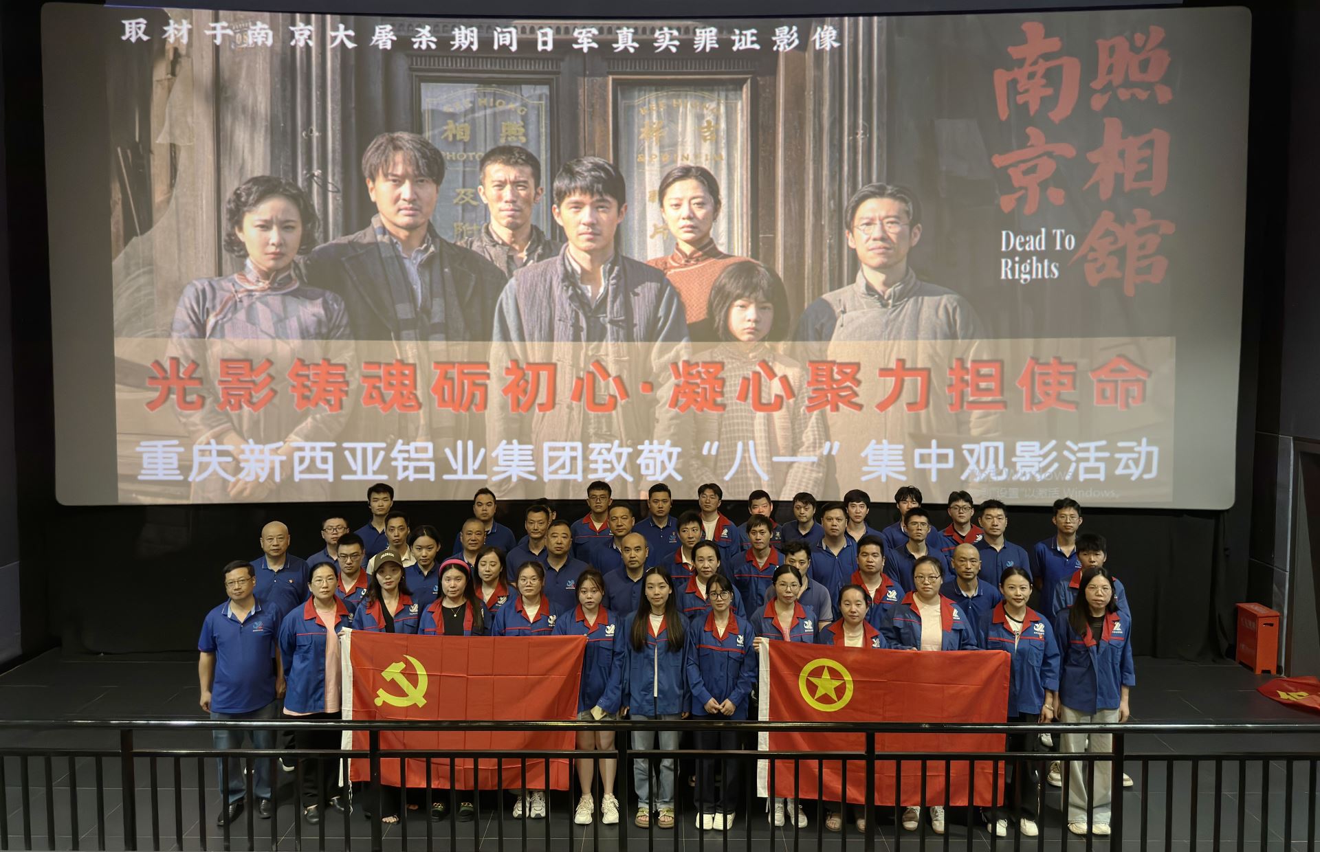 活動(dòng)伊始,全體參與人員在影城前合影留念,定格下這一意義非凡的集體學(xué)習(xí)瞬間。隨后,大家懷著無(wú)比崇敬與肅穆的心情步入影廳,共同觀看了重大歷史題材影片《南京照相館》。