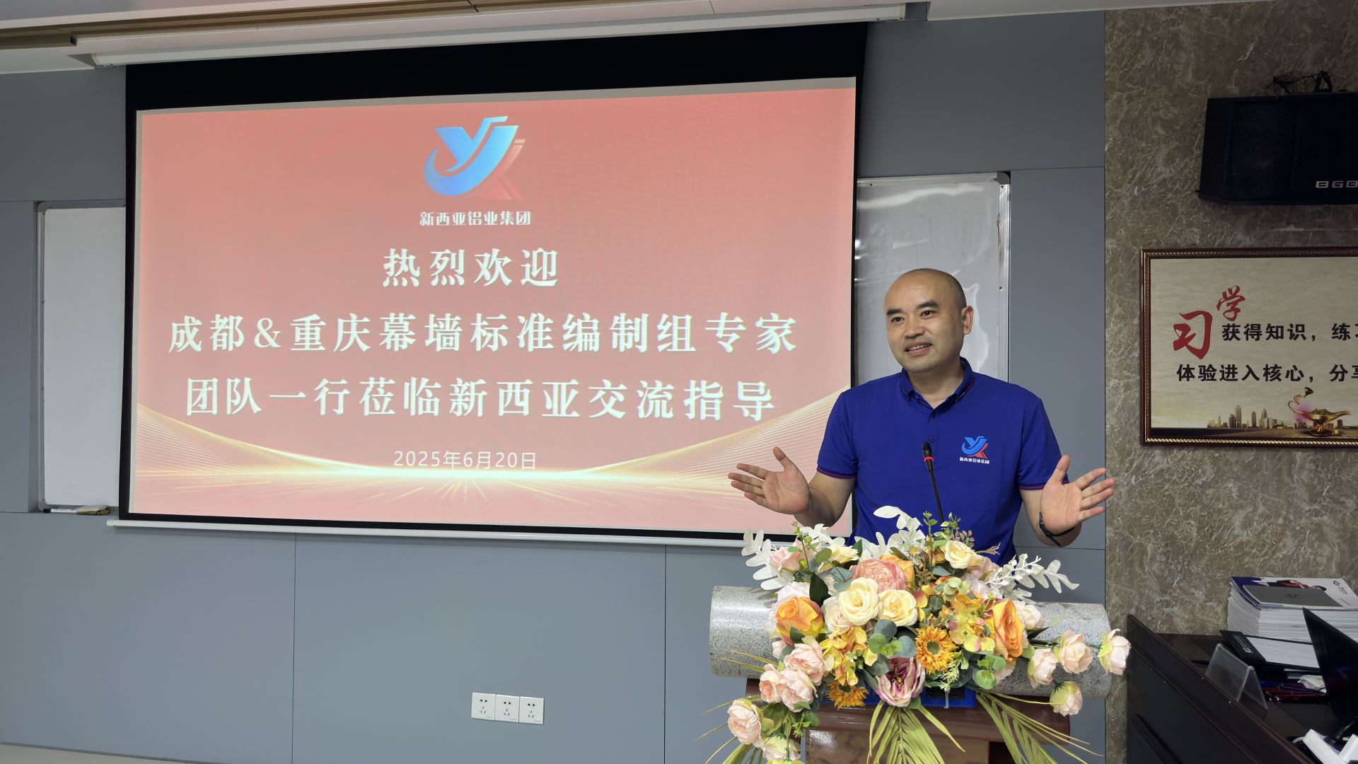 集團總經(jīng)理劉斌在致辭中首先對編制組各位專家的到來表示熱烈歡迎和衷心感謝。他表示,新西亞鋁業(yè)始終秉持“以鋁深加工為核心,裝飾帶建材、建材促裝飾”的同心多元化戰(zhàn)略,深耕“鋁裝飾、鋁家居、鋁建材、鋁科技、鋁勞務、鋁板材”領域。此次有幸成為重慶市《既有建筑幕墻門窗維護與改造工程技術標準》的參編單位,并榮幸承辦本次交流活動,這不僅是對新西亞過往技術積累與行業(yè)貢獻的肯定,更賦予了新西亞沉甸甸的責任。